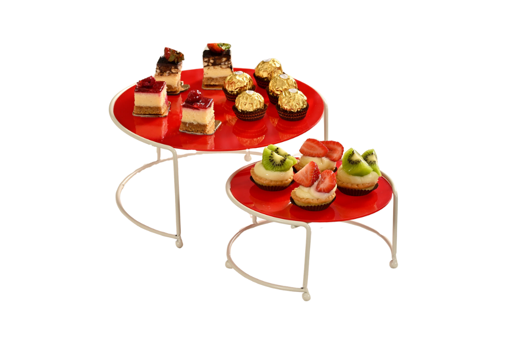 Beige Small Size Presentation Holder 2 Piece Metal Gift Decoration Catering / Red Plexi / Stainless Steel